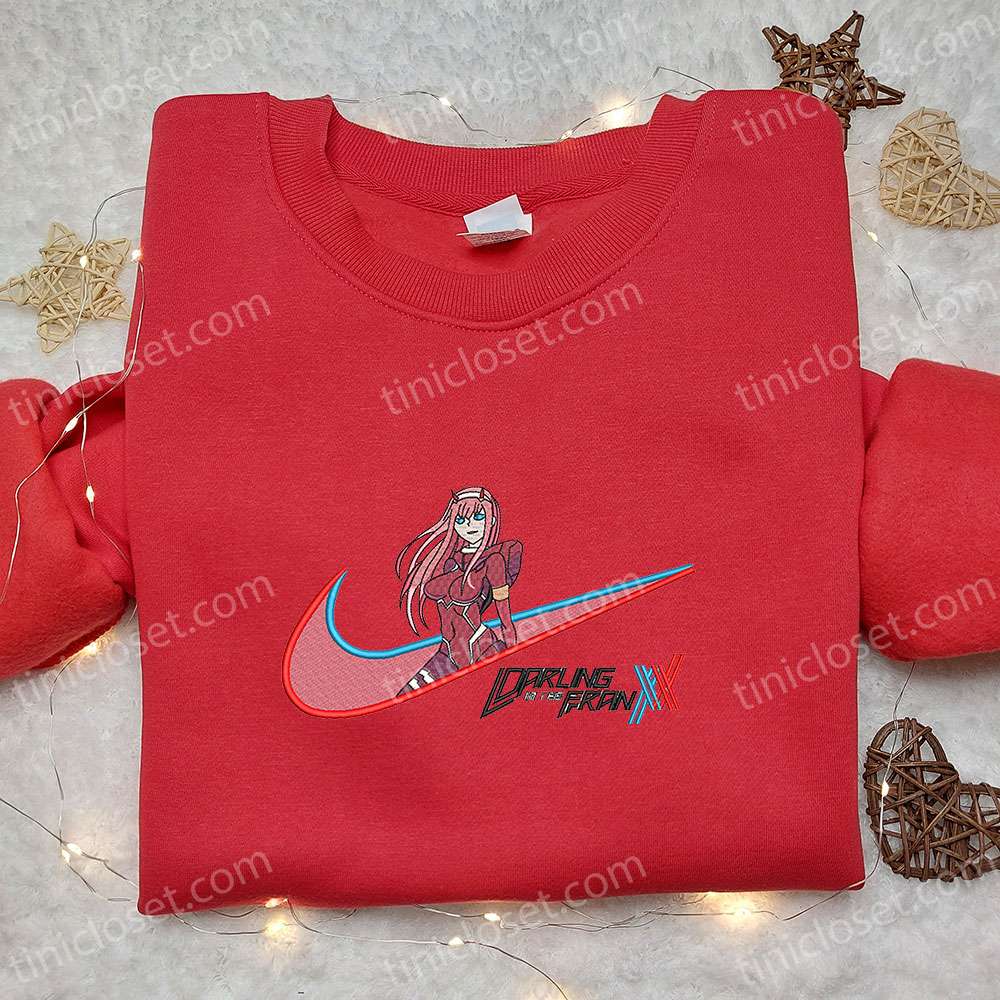 Zero Two x Swoosh Anime Embroidered Sweatshirt, Nike Inspired Embroidered Shirt, Custom Embroidered T-shirt