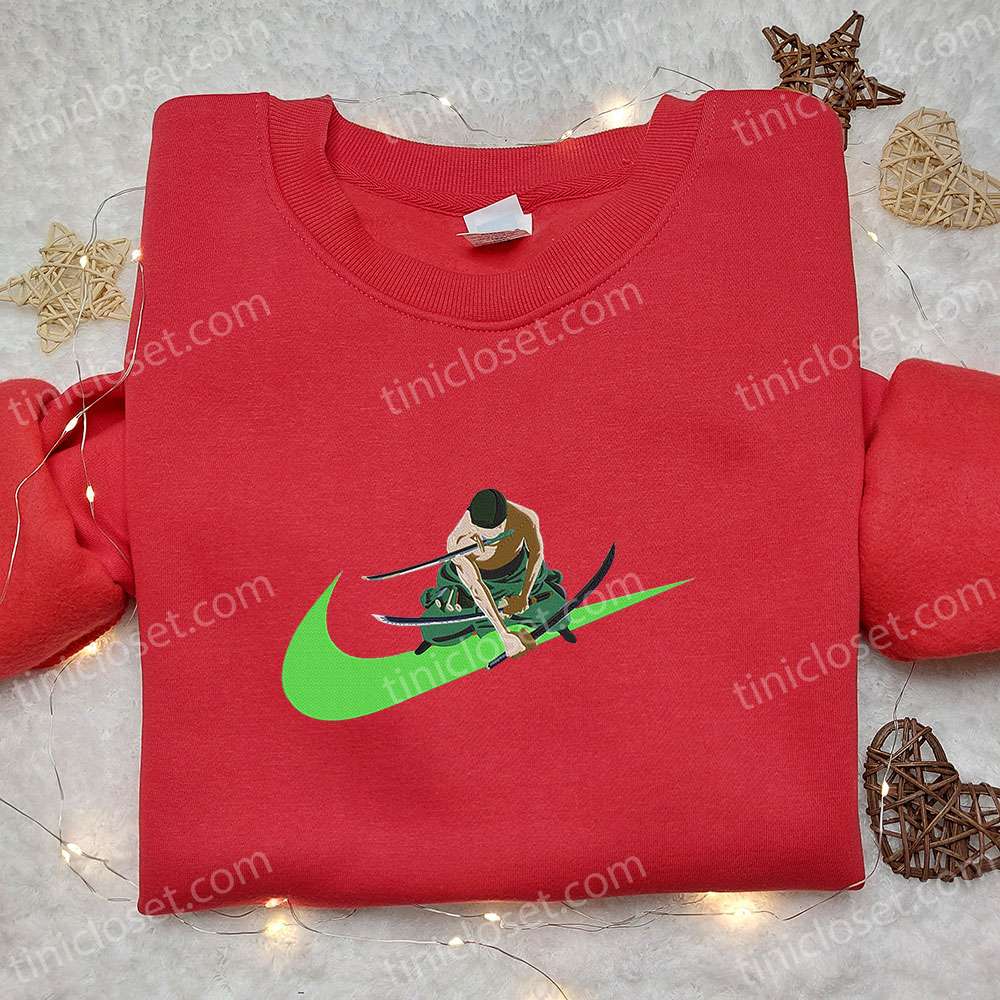 Zoro One Piece x Swoosh Anime Embroidered Hoodie, Cool Anime Clothing, Best Gift Ideas for Family